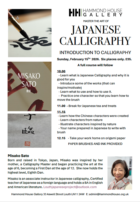 A new range of art Classes begins in February with an introduction to Calligraphy with Misako Sato